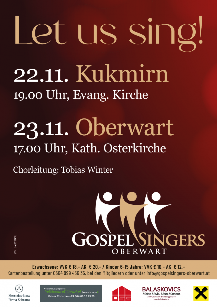 Am 7.und 8.12. fanden in der kath. Kirche Stegersbach und in der evang.Kirche in Pinkafeld unsere Gospelkonzerte unter dem Motto "Christmas is coming" vor ausverkauften Kirchen statt. Das Programm begeisterte die Zuseher mit hinreißenden Klängen und einer Atmosphäre voller Energie und Freude. Unter der Leitung von Tobias Winter und Lisa Muth und der Unterstützung der hervorragenden Band wurde das Konzert zu einem unvergesslichen Erlebnis.